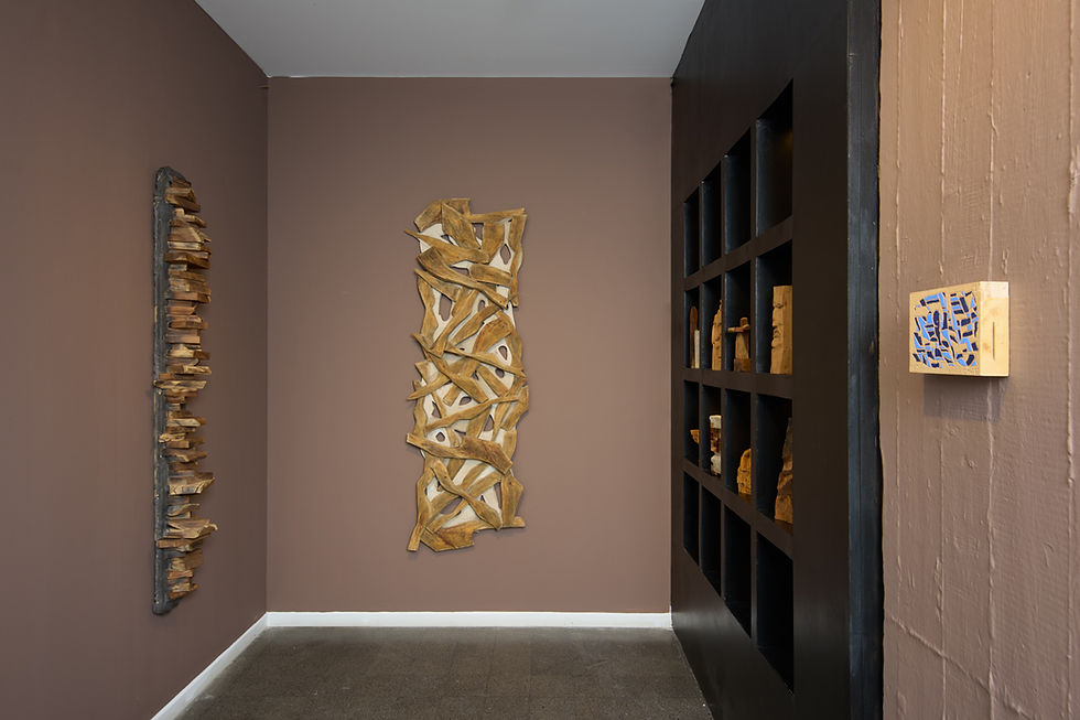 Indeed, these works are not permanent, but rather inhabit the gap between the living and the inanimate. The almost magical connection between Didi and the wood he works with gives them a second life after they were felled. Through these, he participates in a dialogue that acknowledges a history of living, blooming, budding, and then felling, chopping, splitting, and sometimes – burning and drying in the oven.